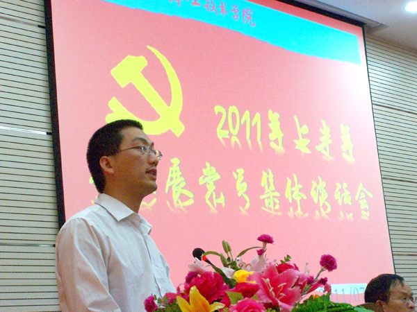 学院党委书记邓福田对新党员提出三点希望,一是要加强党性锻炼,尽快成为一名名符其实的共产党员;二是加强学习,不断提高自己的政治素养和政治理论水平;三是要在工作、学习中,按照共产党员标准要求自己,起带头作用。