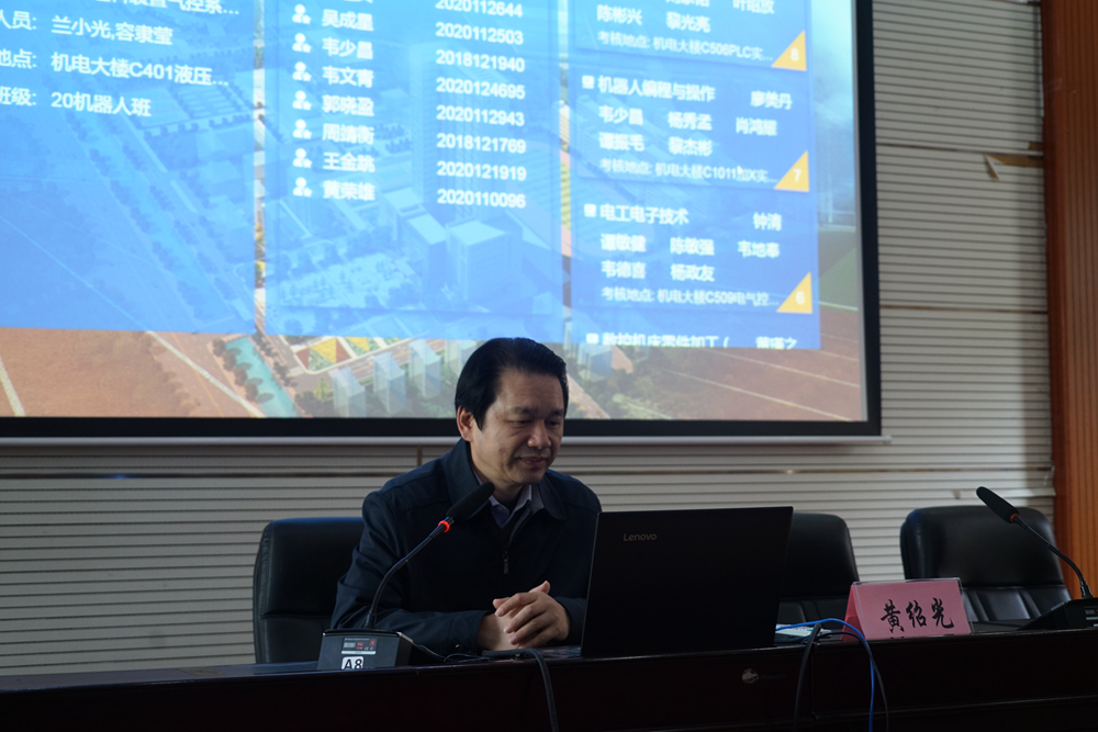 12月14日下午,我院组织开展2021-2022年度上学期院级学生技能抽查测试,学院院长黄绍光、学院副院长卢森焕出席活动,各系部负责人参加活动。