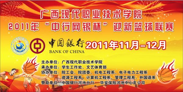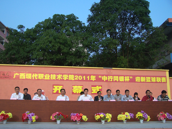 学院党委宣传部综讯(韦安然 陆锋 莫春燕)广西现代职业技术学院2011年 “中行网银杯” 迎新篮球联赛开幕式于2011年11月1日下午在我院文体广场隆重举行。