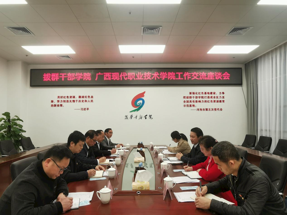 2022年3月24日,广西现代职业技术学院黄绍光校长,马克思主义学院陆孟兰书记、陆柳梅副院长等一行4人赴拔群干部学院,就我校与拔群干部学院开展合作办学事宜进行考察交流。
