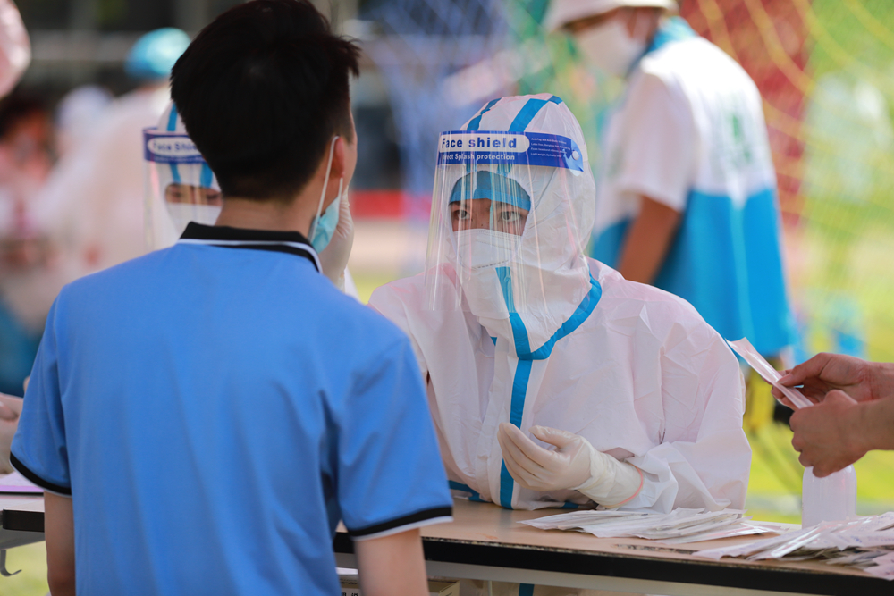 在现场志愿者们的指引下,师生们井然有序地排队入场,等候接受核酸检测,医务人员规范化、流程化采样,受检人员采样结束后立即离开采样点,不逗留。各环节人员配合密切,受检人员秩序井然,现场快速高效。