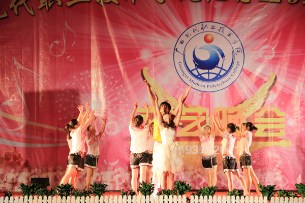 接着,晚会在随后的时间里,高潮迭起、异彩纷呈。先是由计算机工程系同学们带来富有民族韵味的舞蹈表演《黄河,大海》,柔美的舞姿与高亢的歌曲的完美结合,掀起类晚会的帷幕。之后节奏欢快的啦啦操《青春律动》、优雅柔美的舞蹈《生命交响曲》、动感十足的街舞《地板上的青春》、动听优美的女生合唱《听你说》、调侃风趣的哑剧《神医》、娓娓动人的流行歌曲联唱《毕业了》、俏丽动感的现代舞《性感部落》、真功夫《武力四射》等节目,一次又一次地将本场晚会推向高潮。其中的哑剧《神医》、相声《我的大学生活》博得了台下观众热烈的掌声和笑声。男声独唱《一天一万年》则以其旋律优美的音乐、天籁之音般的浑厚歌声,营造出另一番美妙醉人的诗境。晚会在民族舞蹈《春暖花开》中成功落下帷幕。整台晚会现场气氛热烈,节目形式多样,内容丰富多彩,赢得现场阵阵掌声。整台晚会节目精彩纷呈,高潮迭起,荡气回肠,观众掌声哨声不断,度过了一个广西现代职业技术学院的激情之夜。