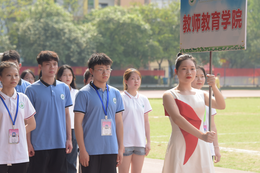 伴随着激昂的入场曲,国旗、校旗、校徽、裁判员方块队、各二级学院方块队有序入场,他们昂首阔步、英姿飒爽,带着满腔热情与活力依次通过主席台,为开幕式增添了一道独特的风景。