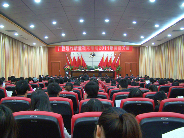 院党委宣传部讯(曾 严 莫春燕) 2011年12月26日下午,广西现代职业技术学院2011年度党员大会在学院第二学术报告厅隆重举行。学院党委书记邓福田,党委副书记、纪委书记覃志航,学院党委委员、副院长潘尚河出席大会。