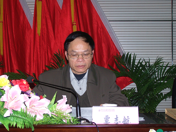 上图:学院党委副书记、纪委书记覃志航同志作纪委工作报告。