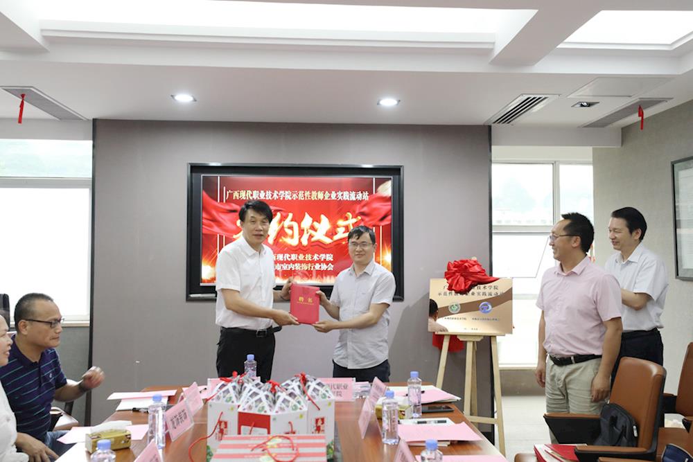 5月13日下午,黄绍光校长带领建筑工程学院、教务处、宣传部和就业处的相关负责人到河池市室内装饰行业协会开展访企拓岗促就业专项行动,并为示范性教师企业实践流动站揭牌。此次活动得到了参会企业的大力支持,同时获得了企业提供的一百多个学生就业岗位和十多个教师实践岗位。本次交流会由建筑工程学院胡万志院长主持。