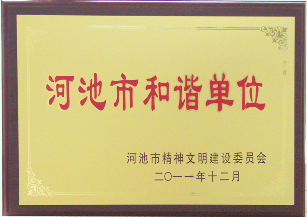 本站宣传部讯(曾严)日前,河池市精神文明建设委员会发布《关于命名表彰第一批河池市“九大和谐建设”先进单位的决定》(河文明委[2011]11号),表彰第一批河池市“和谐单位、和谐乡镇、和谐村屯、和谐街道、和谐社区、和谐家庭、和谐学校、和谐企业、和谐邻里”九大和谐建设先进单位,其中我院荣获“河池市和谐单位”称号。