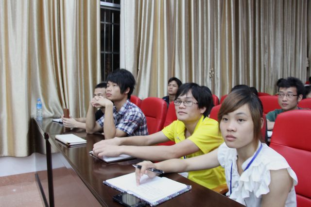 本次培训主要从新闻含义和新闻写作原则,新闻的特点和写作要领,新闻标题的提炼,新闻导语、主体、背景与结尾的写作艺术,几种常见校园新闻稿写法等方面进行深入浅出的讲解。莫老师的讲解方式灵活、针对性强,新闻要点与实例相结合,十分符合同学们日常新闻写作的需要。她希望同学们平时要多观察,多思考,多借鉴、多积累,不断提高自己的文学修养和写作能力。同学们十分珍惜此次培训学习机会,聚精会神地听老师讲课,并认真做着笔记。