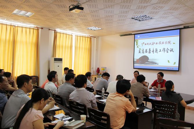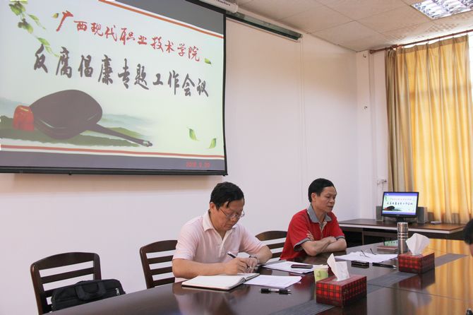 党委宣传部讯(曾严)2012年6月20日下午,我院在第二会议室召开反腐倡廉专题工作会议,对治理整顿个人、系部乱办班进行相关工作部署。会议由党委副书记、纪委书记覃志航主持。
