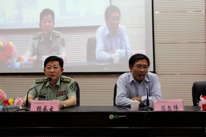 学院党委宣传部讯(曾严) 在“第十二个全民国防教育日”即将到来之际,2012年9月14日下午,河池市2012年国防形势报告会在我院第一、第二学术报告厅举行,河池军分区政治部主任杨承云为在校的500多名师生作国防形势报告。报告会由我院副院长冯忠伟主持。