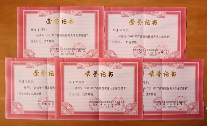 我院在2011年广西高校大学生志愿者评选中取得佳绩
