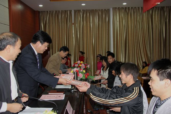 覃志航副书记首先宣读中共广西现代职业技术学院委员会党校关于授予陈述静等十五位学员第十一、十二期入党积极分子培训班“优秀学员”荣誉称号的决定。学院领导为优秀学员颁发了荣誉证书。