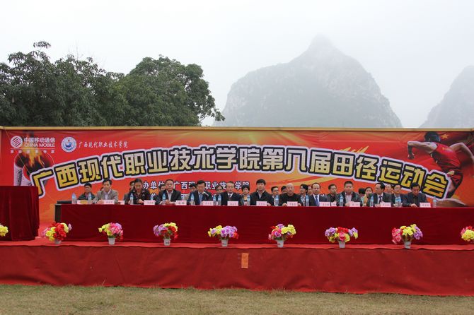 党委宣传部讯(曾严) 2012年11月22日上午,迎着秋日的清晨和微风,在党的十八大胜利闭幕之际,我校迎来了第八届田径运动会的到来。这一天,田径场上彩旗飘扬,热闹喧腾,我院第八届运动会开幕式在这里隆重举行。河池市人大常委会党组成员银建军教授出席开幕式并宣布本届运动会开幕,学院党委书记韦伟松,党委副书记、纪委书记覃志航,中国移动河池分公司副总经理潘雄,副院长冯忠伟,河池市职教中心副校长唐启焕、黄丹峻,中国移动金城江分公司总经理谭春喜、副总经理莫江及学院各职能部门、各系主要负责人出席了22日上午的开幕式。