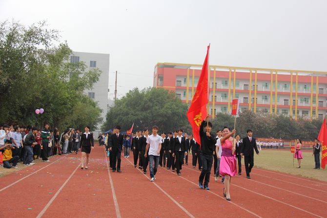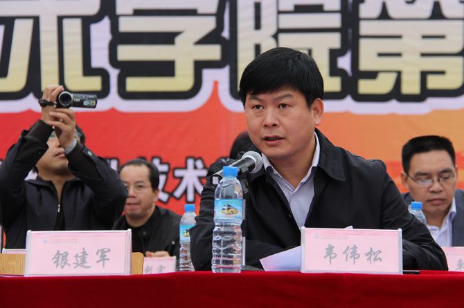 韦伟松书记在开幕式上致辞。他指出,近年来,学院全面贯彻党的教育方针,坚持教育创新理念,运用科学的管理方法,大力加强教育现代化建设,尤其今年以来,学院通过开展“思想解放大讨论”活动,实施“五大工程”建设,凝心聚力,狠抓内涵建设,不断提高教育教学水平;以学生满意度提升学院管理服务水平;进一步加强校风、学风、教风建设,取得良好效果,赢得社会广泛认同,学校的声誉日益提高。校运会是学院精神文明建设的重要内容,是我院校园文化活动的重要组成部分,是教育教学的重要环节。举办这次田径运动会,既是对我院体育常规工作的一次综合检查,也是对同学们身心素质、运动技能、精神风貌的一次大检阅。它将进一步推动我院体育事业的发展,使我院的校园文化和综合办学水平再上新台阶。他希望本届校运会上全体运动员能展现学院昂扬的精神风貌,并预祝本次运动会取得圆满成功。