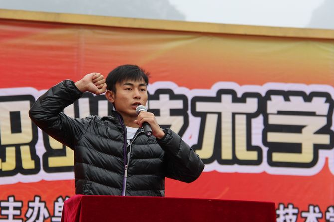 学院文体部韦棨文老师和管理外语系黎锦泉同学分别代表裁判员和运动员宣誓。