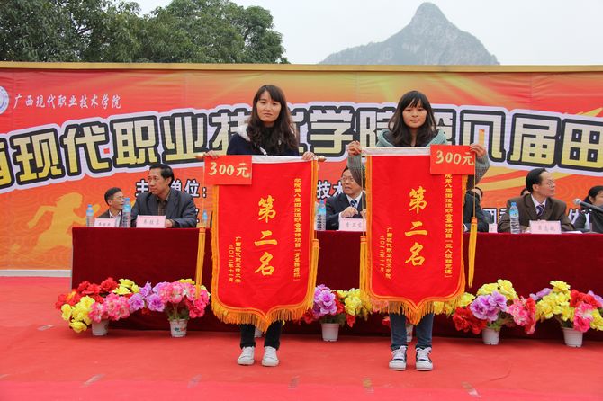 赛场上,来自机电工程系、管理外语系、电子电力工程系、计算机工程系、资源工程系及五年制大专班的运动健儿们以饱满的热情和良好的竞技状态投入到比赛中,展现了我院学子昂扬向上的精神风貌。比赛中,运动员们精神饱满、奋勇争先;看台上,观众们挥舞着手中的彩旗和标语,为参赛队员呐喊助威。经过两天的激烈角逐,电子电力工程系夺得了团体总分第一名,管理外语系、机电工程系分获第二、三名;管理外语系和五年制大专班荣获精神文明奖。本届运动会还首次增加了三人板鞋竞速迎面接力、背篓接绣球两个民族体育集体项目,五年制大专班和管理外语系分获两个项目的第一名。与会校领导亲自为获奖单位颁发了牌匾、锦旗和奖金。