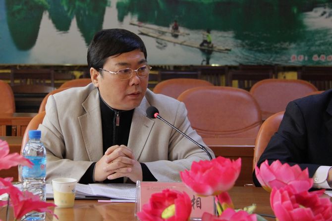 学院党委书记,河池市职教中心党委书记、校长韦伟松作汇报
