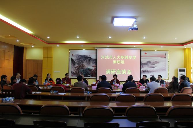 座谈会由河池市人大常委会教科文卫委员会主任王国秀主持,我院及市职教中心有关部门领导参加了座谈会。