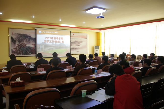 我院在图书馆会议室组织了开学情况汇报会,会议由学院党委书记韦伟松主持,韦伟松书记对检查组领导到我院检查指导工作表示热烈欢迎,并简要介绍了学院目前的发展情况。他表示,学院正积极学习贯彻党的十八大精神,积极贯彻落实国家和自治区教育工作会议精神,统一思想,凝心聚力,强力推进内涵建设,促进学院跨越发展;他希望,要以此次检查为契机,认真听取检查组的宝贵意见,做好学院的各项工作。
