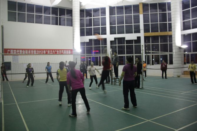 院工会讯(韦安然)为热烈庆祝“三八”国际妇女节103周年,营造浓厚的节日氛围,促进我院女教职工之间的沟通交流,展示我院女教职工健康文明、积极向上的精神风貌,学院工会于2013年3月6日至7日举办了女教职工气排球比赛。