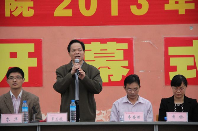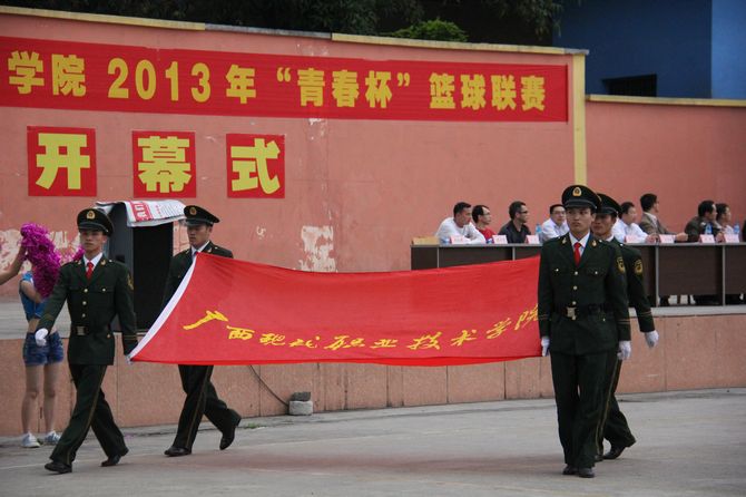 学工处、团委、文体部讯 为丰富学院广大师生的课余生活,提高我院篮球运动水平,促进各系学生之间及师生之间的交往与交流,营造良好的校园文体活动氛围。2013年3月29日下午,我院2013年“青春杯”第十届篮球联赛开幕式在学院文体广场隆重举行。学院党委副书记、纪委书记覃志航副教授出席并宣布开幕,学工处、团委、工会、文体部、河池市职业教育中心学校学工处领导、各系分管学生工作领导以及赞助单位的相关人员参加仪式,学工处副处长、团委副书记黄仕珍主持开幕式。