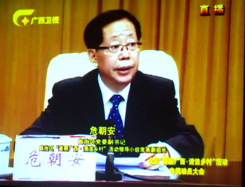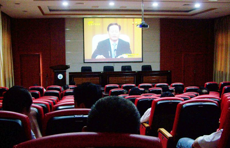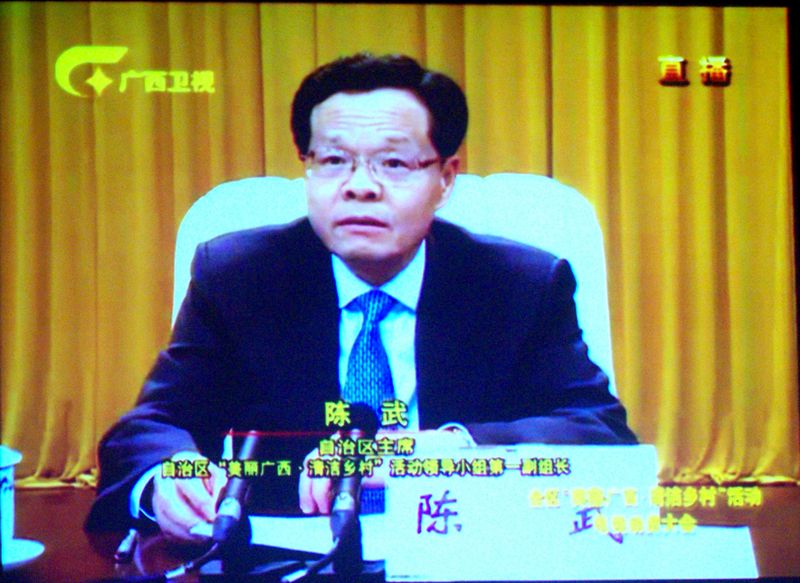 学院党委宣传部讯 2013年5月2日上午,自治区党委、政府召开全区“美丽广西·清洁乡村”活动电视电话会议。自治区党委书记、自治区人大常委会主任彭清华作重要讲话,自治区主席陈武作工作部署,自治区党委副书记危朝安主持大会。会议采用电视电话形式,在南宁设主会场,各市、县(市、区)设分会场,并由广西人民广播电台、广西电视台直播。我院党委宣传部、纪检、后勤、学工、工会等相关部门全体人员在学院第二学术报告厅集中收看广西电视台会议直播。