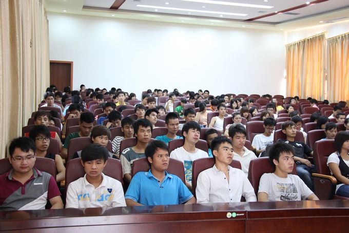 院党委宣传部讯 为深入贯彻落实党的十八大精神,扎实开展中国特色社会主义宣传教育,畅想民族复兴“中国梦”的光明前景,引导大学生树立崇高的理想信念。2013年5月28日下午,我院在第一、二学术报告厅举行了“信仰·理想与中国梦”专题讲座。河池市人大常委会副主任银建军教授应邀主讲。学院党委副书记、纪委书记覃志航,学院全体教职工以及部分大学生500多人参加了专题讲座。