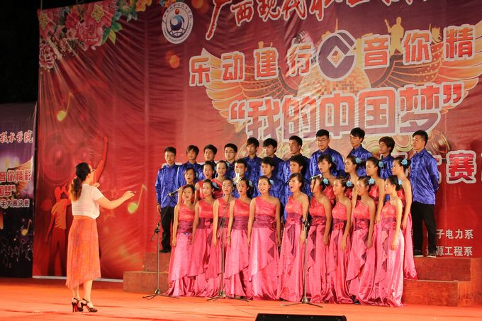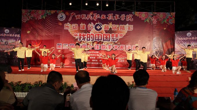 此次比赛,学院邀请到河池市群众艺术馆副馆长、河池市音乐家协会秘书长陈永良,中国音乐家协会会员、河池市音乐家协会主席、群文系列研究馆员陈恒芳,河池市群众艺术馆专家、中国音乐家协会会员、河池市音乐家协会副主席吴保剑,河池市职教中心团委书记、广西民间文艺家协会理事、河池市民间文艺家协会副主席姚亮等艺术专家担任评委。我院院长助理韦胜东、韦建军及全体师生参加决赛晚会,河池市职教中心部分领导及师生也应邀出席。此次决赛晚会得到中国建设银行河池分行的大力支持和帮助。