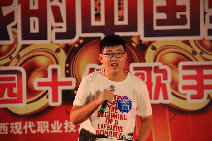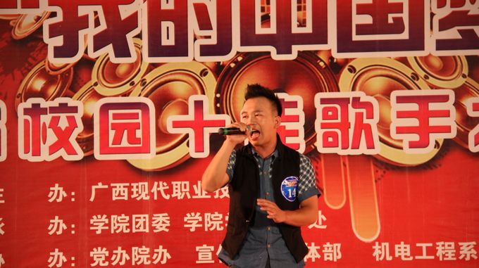 上图为机电工程系覃家运同学演绎的独唱《天高地厚 》。