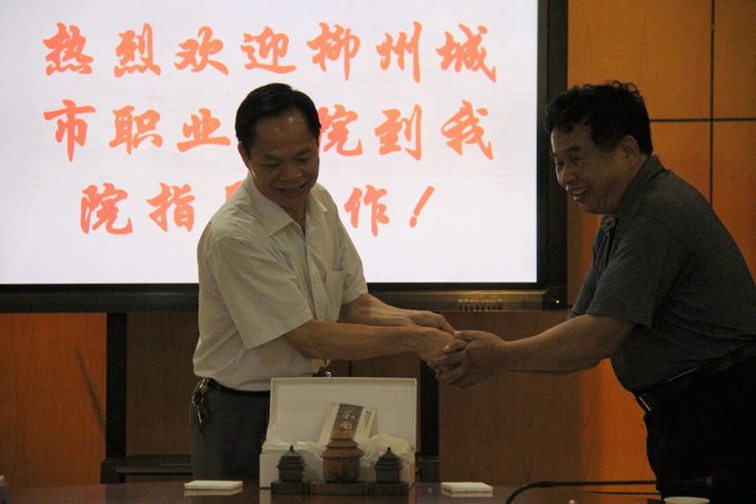 院党委宣传部 2013年6月7日上午,柳州城市职业学院考察团在党委书记唐明生的带领下,一行7人到我院考察交流学生公寓、学生食堂标准化建设与管理、校园安保等相关工作的主要做法与经验。学院党委副书记、纪委书记覃志航,院长助理韦胜东以及相关部门负责人参加了有关接待活动。