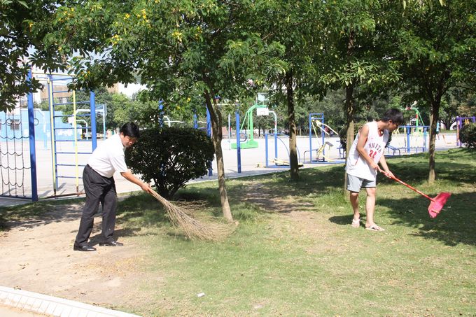 督查结束后,韦书记还与陪同人员、学生清扫了校道环境卫生。