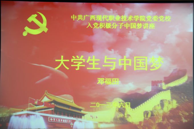 学院党委组织部讯 2013年6月19日晚,学院党委党校在第二学术报告厅举行入党积极分子“中国梦”主题讲座,邓福田教授作了题为“大学生与中国梦”的专题报告,学生党员及入党积极分子共200多人聆听报告。