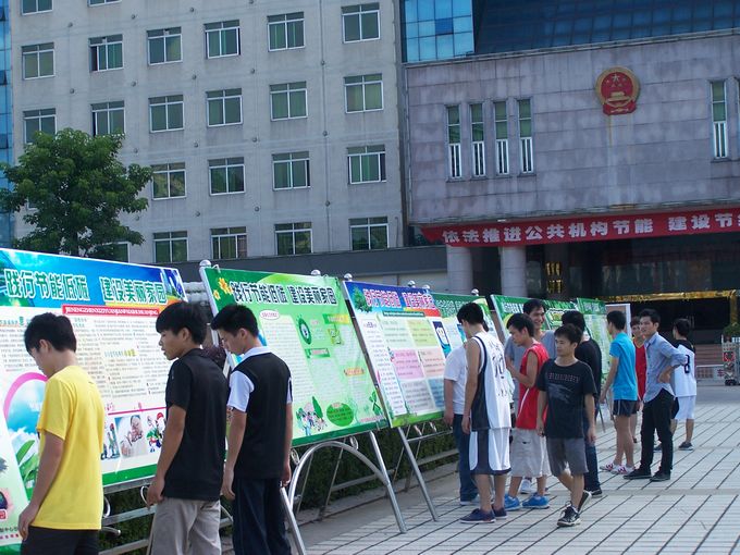 学院节能办讯 为引领大学生们参与全社会节能减排,加强大学生节能减排意识,发挥当代大学生节能示范作用。2013年6月20日下午,我院组织100多位师生到市政广场参观河池市“践行节能低碳,建设美丽家园”板报展览活动。