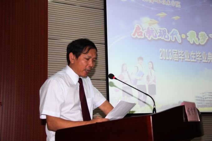 上图:副院长冯忠伟宣读学院荣获2013届自治区级优秀毕业生的表彰文件。