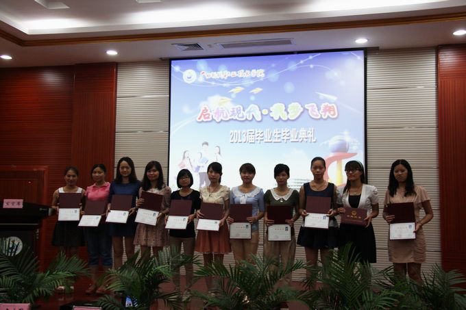 随后,冯忠伟副院长宣读了学院荣获2013届自治区级优秀毕业生的表彰文件,并给荣获“2013届自治区级优秀毕业生”以及“2012年度自治区三好学生”、“2012年度自治区优秀学生干部”、“2011年度广西高校优秀共青团员”、“2011年广西高校优秀大学生志愿者”等荣誉称号的毕业生颁发荣誉证书。紧接着进行颁发毕业证仪式,由出席毕业典礼的学院领导为50名毕业生代表颁发毕业证。