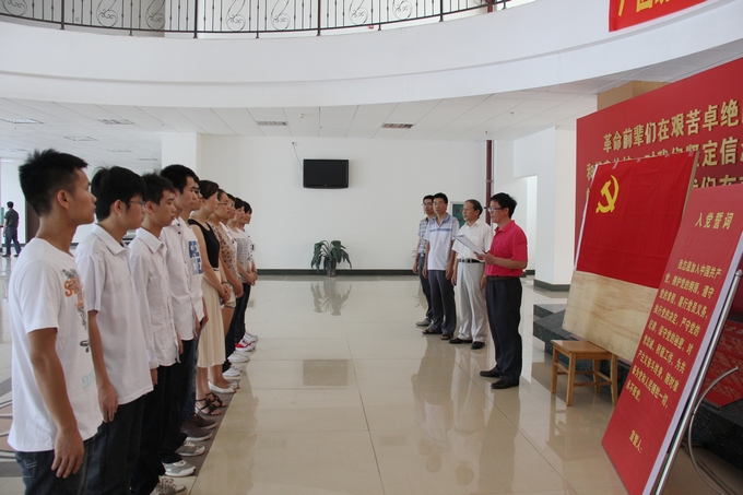 学院党委组织部讯 在中国共产党92周年华诞之际,7月1日下午,我院2013年上半年新发展党员入党宣誓仪式在河池革命纪念馆举行。入党宣誓仪式由学院党委组织部罗之尚部长主持。学院党委组织部有关同志、各系党总支书记、正式党员代表以及新发展的部分在校的预备党员参加宣誓仪式。