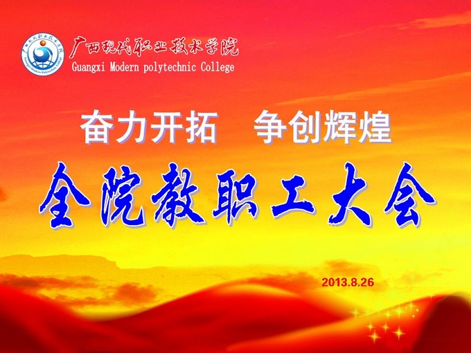 党委宣传部讯 8月26日上午,我院2013年秋季新学期全体教职工大会在学院第二学术报告厅举行。市委副秘书长、学院党委书记韦伟松出席大会并讲话。大会由学院党委副书记、纪委书记覃志航主持。