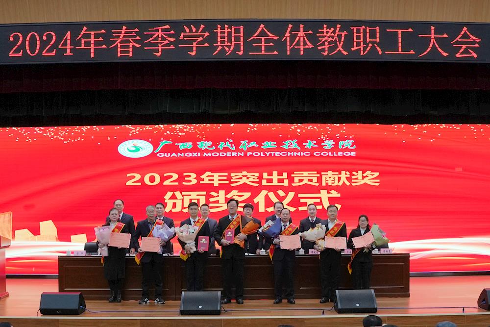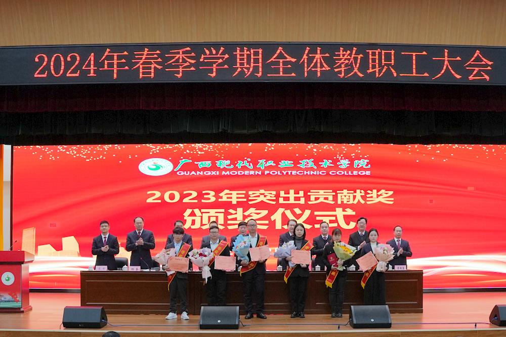 韦伟松在会上作《统一思想,凝心聚力,拼尽全力努力实现广西现代职业技术学院新辉煌》的讲话。他指出,一要明确今后工作目标任务,扎实推进区级、校级“双高”建设,努力打造民族美食、民族歌舞、劳动教育、民族共同体等特色品牌。二要统一思想认识,形成强大合力,悟透“赢”“败”之道,实现自我大加压;悟透“精气神”(顺、活、旺,强)之道,成就个人大提升;悟透干事创业之道(严和实),实现人生大出彩;悟透格局之道,力争好的局面。