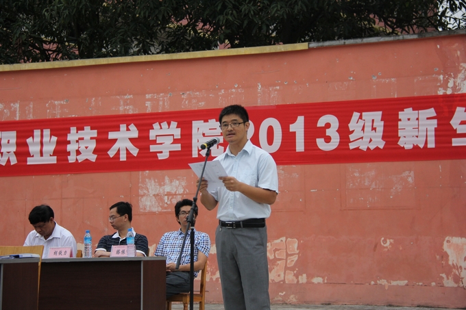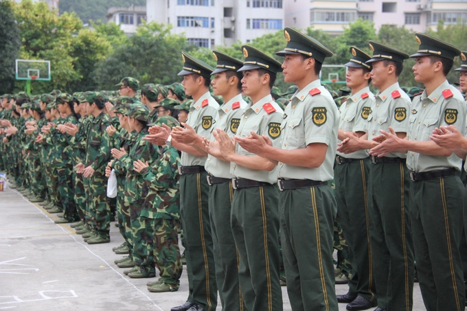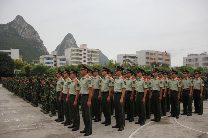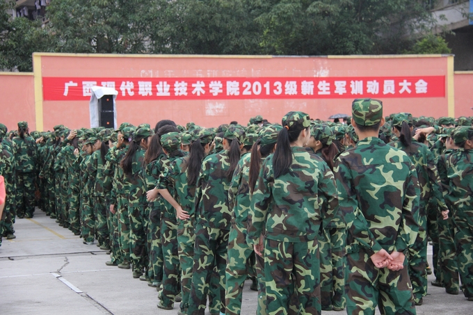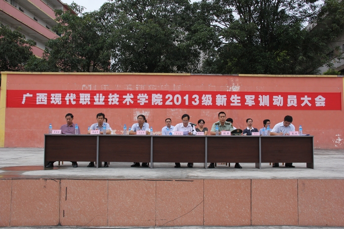 9月5日上午,我院2013级新生军训动员大会在文体广场隆重举行。近两千名新生身着迷彩、英姿飒爽、整齐排列在主席台前,他们将在未来近半个月时间里接受一系列军事训练。学院党委副书记、纪委书记覃志航,副院长冯忠伟,院长助理韦胜东、韦建军,各系主要领导及承训官兵等参加了动员大会。大会由学工处处长岑华主持。