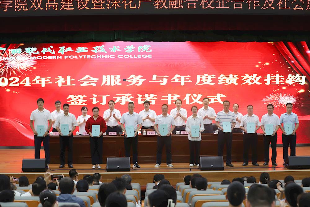 会上,岑华解读社会服务与年度绩效挂钩工作方案;二级学院部门代表分别发言;各团队递交2024年社会服务工作承诺书。