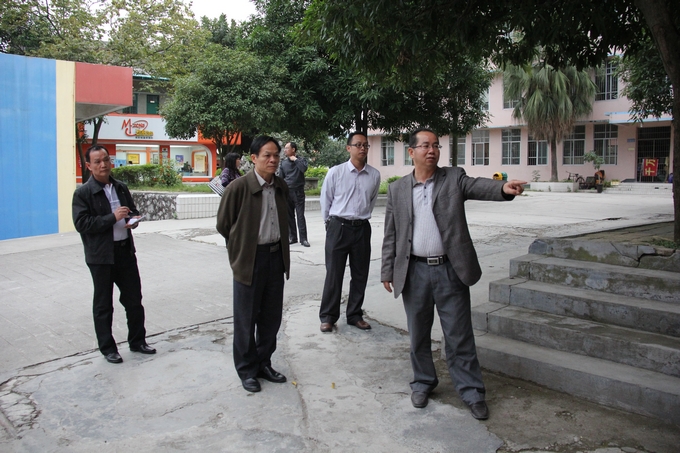 学院党委宣传部讯 2013年10月21日,学院党委副书记、纪委书记覃志航率院办、教科处、后勤处、宣传部、学工处、纪检办、图书馆以及各系部相关负责人检查我院新一轮“美丽河池·清洁校园”活动开展情况。