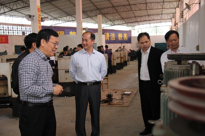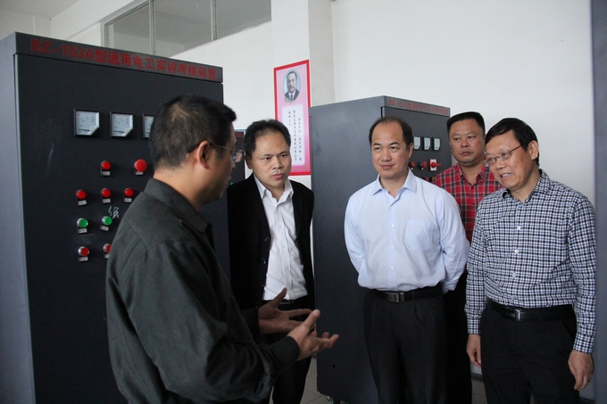 李明乾一行首先参观了学院焊工实训室、数控实训室、电工实训室、制冷实训室,并对我院技能培训的硬件、软件方面建设给予很高的评价。在随后的座谈会上,学院领导详细介绍了学院技能培训的办班规模、师资力量以及近年来与河池市总工会、扶贫办、人社局等单位联合办班的典型培训案例,同时,也希望宜州监狱能与我院长期合作,为即将走上社会的临释人员传输技能知识,让他们有较好的就业路子,降低他们的重新违法犯罪率。李明乾表示,广西现代职业技术学院在技能培训工作方面做得非常好,也有一定的培训经验,宜州监狱临释人员技能培训班放在这里培训非常适合,考虑到临释人员的特殊性,学院要选派培训老师到宜州监狱现场授课,具体的工种培训,待给临释人员作个全面的调查后择期办班,同时,宜州监狱还将把临释人员技能培训打造成为临释人员教育工作的亮点,并作为一项长效机制常抓。