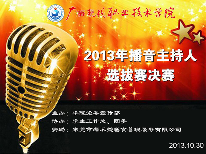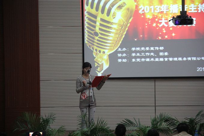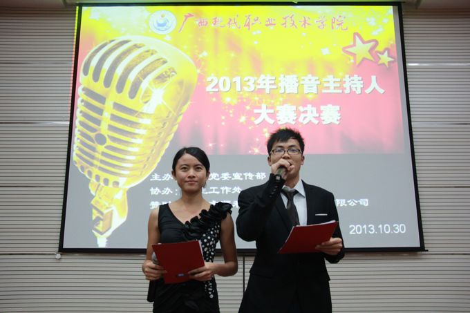 学院党委宣传部讯 为加强校园精神文明建设,活跃校园文化,丰富大学生的文化生活,充分挖掘富有潜质的播音员、主持人的新苗,展现广现职学子精神风貌,我院于10月30日晚在第二学术报告厅举行2013年播音主持人大赛决赛。大赛由学院党委宣传部、学工处、团委举办。学工处处长岑华、副处长李铃和团委副书记、学工处副处长黄仕珍出席大赛并担任评委。学院党委宣传部部长曾严应邀观看比赛。