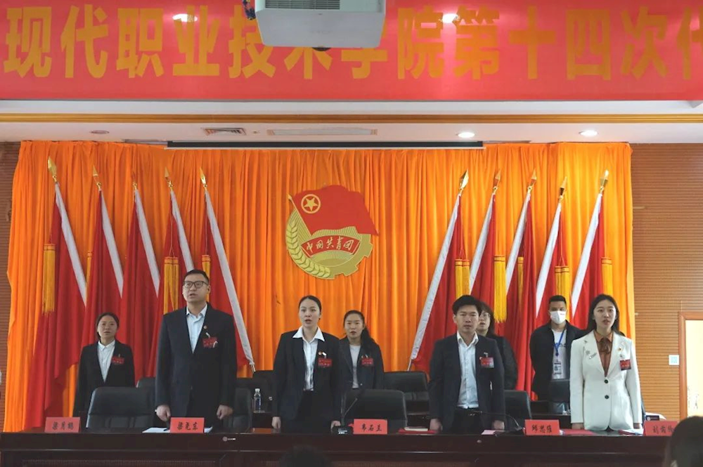 4月22日共青团广西现代职业技术学院第十四次代表大会在第二学术报告厅召开。学校各部门领导及各二级学院分团委书记以及正式代表150人参会。会议由校团委书记韦石兰、副书记梁月鹤主持。