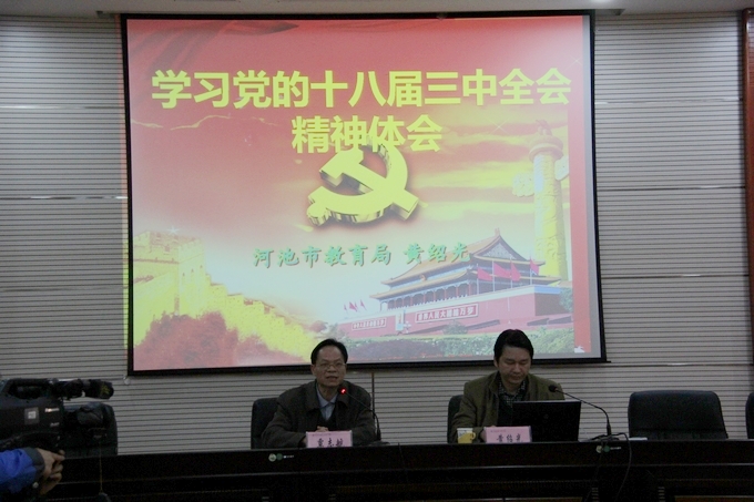 宣讲会上,黄绍光用灵活多变的形式,大量贴近生活的例子,从十八届三中全会的新观点新论断、信访制度改革、生态环境保护问题、启动实施一方是独生子女的夫妇可生育两个孩子的政策、关于推进考试招生制度改革等8个方面,全面、准确、透彻地进行宣讲。同时,他还结合河池的实际,根据学院的实际,重点宣讲关于教育方面的改革问题,在师生中引起巨大反响。