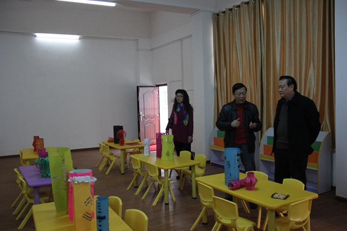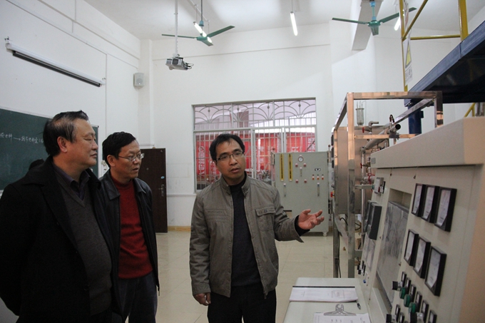 银建军先后参观考察了学前教育实训基地的美术实训室(画室)、舞蹈与形体实训室、音乐实训室、电子钢琴实训室、蒙特梭利教育实训室、幼儿园模拟教室、幼儿手工制作实训室,数控实训室,冶金实验室,间歇反应实验室等。