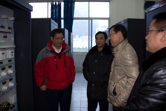 谭峰先一行先后考察了校园、美术实训室(画室)、舞蹈与形体实训室、音乐实训室、电子钢琴实训室、蒙特梭利教育实训室、幼儿园模拟教室、幼儿手工制作实训室、数控实训室、冶金实验室、化工实验室、间歇反应实验室、电子电力实训室等等。在电子电力实训室,谭峰还仔细了解了电子电力工程系的办学历史、办学规模和师资力量等情况。