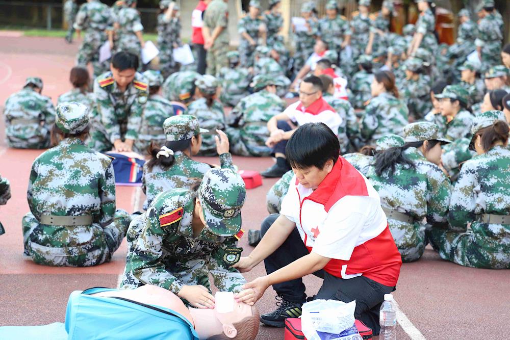 本次培训特邀广西壮族自治区红十字会训练中心35名资深急救导师,分批次分时段下到新生营70个连队开展专场培训,以“全员参与、全员训练、全员考核”的理念,使每一位参与的同学都能掌握基本的急救知识和技能,达到“能救、会救、敢救”的目标。