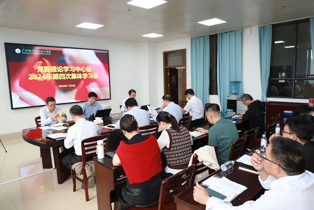 11月4日,学校党委中心组在综合楼2007会议室召开2024年第四次集体学习会,专题学习党的二十届三中全会精神、习近平总书记重要讲话和全国教育大会精神。党委中心组成员出席会议,党办、组织部、宣传部、纪检办有关负责人,各党支部书记列席会议。会议由河池市政协副主席、学校党委书记韦伟松主持。