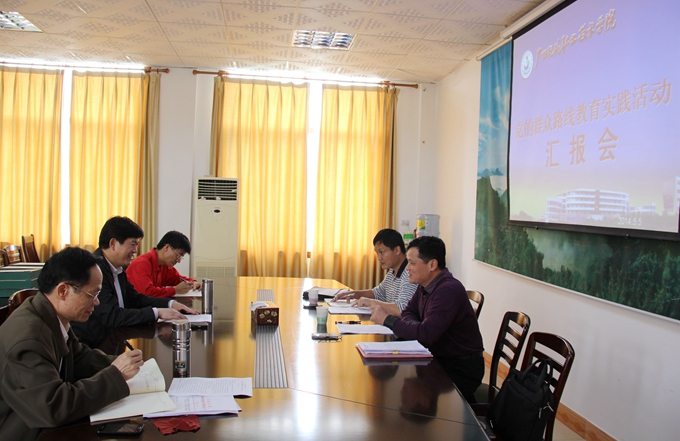 汇报会上,纪委书记覃志航首先向督导组汇报了我院党的群众路线教育实践活动第一环节工作开展情况。其次,韦伟松书记总结了学院开展党的群众路线教育实践活动以来的工作成效,以及学院实施的一线工作法等典型亮点。随后,督导组通过观看活动成果展、查阅材料、交流访谈等方式,对我院前阶段开展党的群众路线教育实践活动进行督导检查。